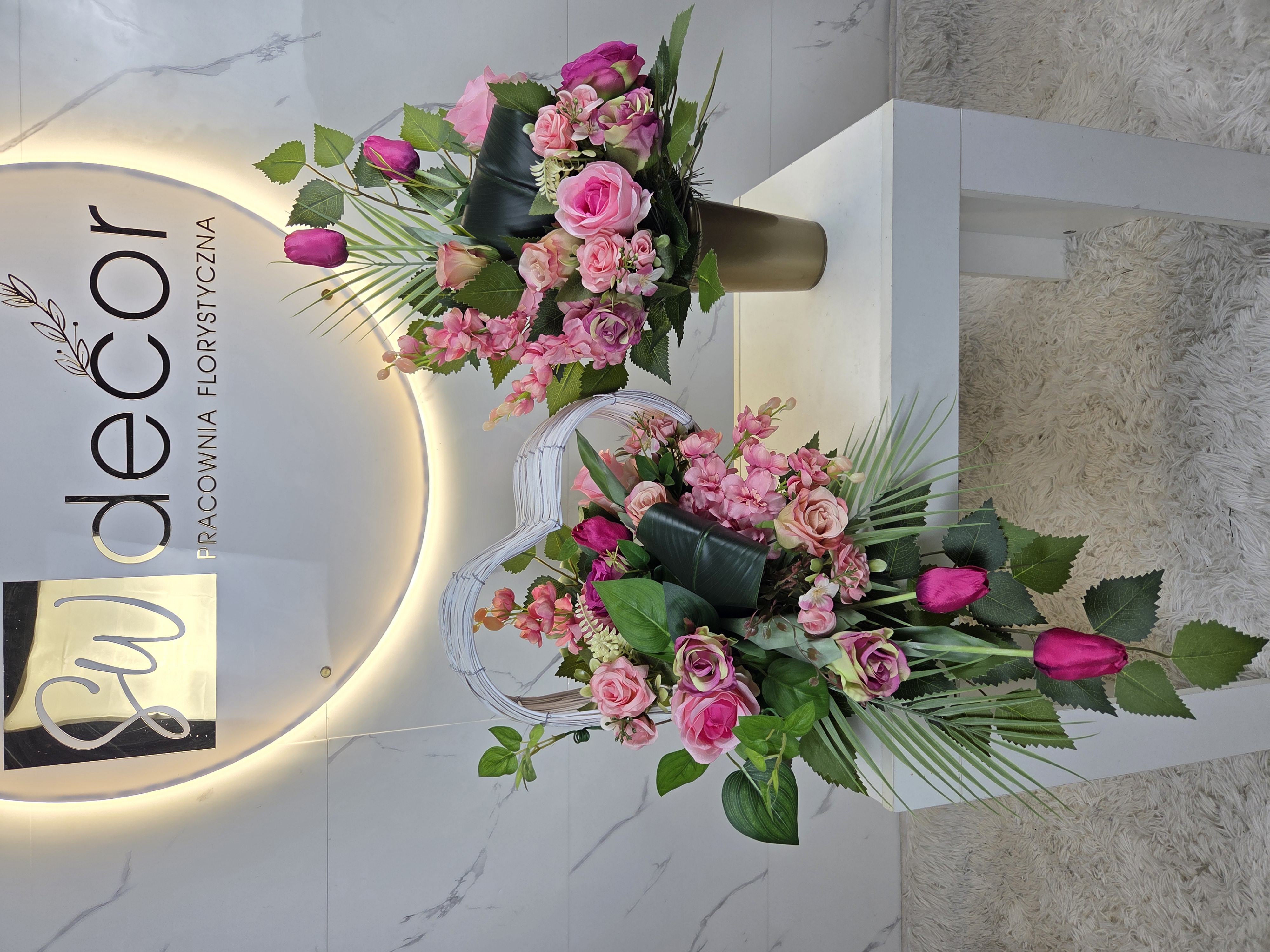Dekoracje wykonujemy w naszej pracowni. 100% handmade. Nie prowadzimy produkcji taśmowej, każda kompozycja wykonana jest w jednym egzemplarzu dzięki czemu masz pewność, że nikt inny nie będzie miał takiej samej.