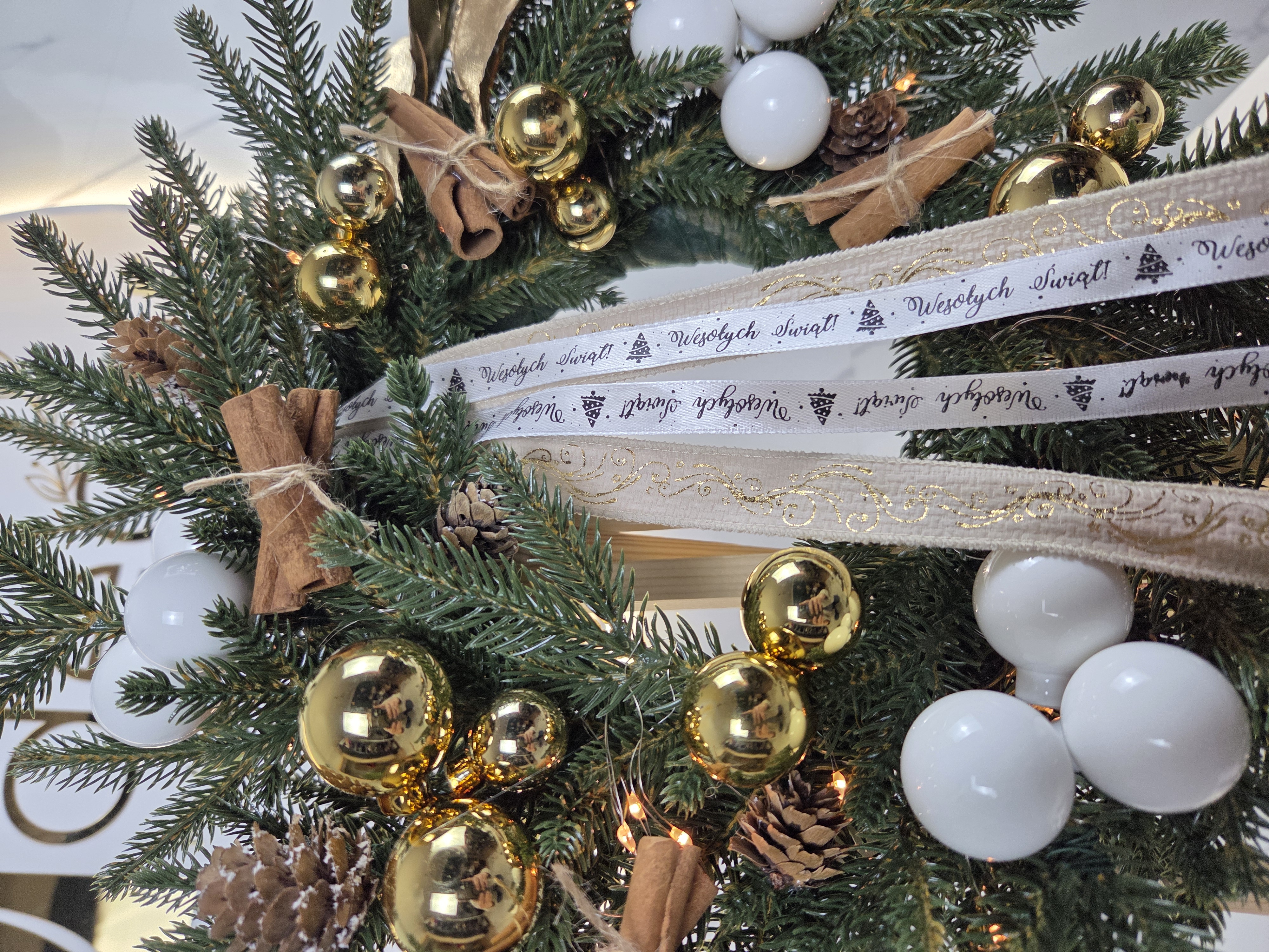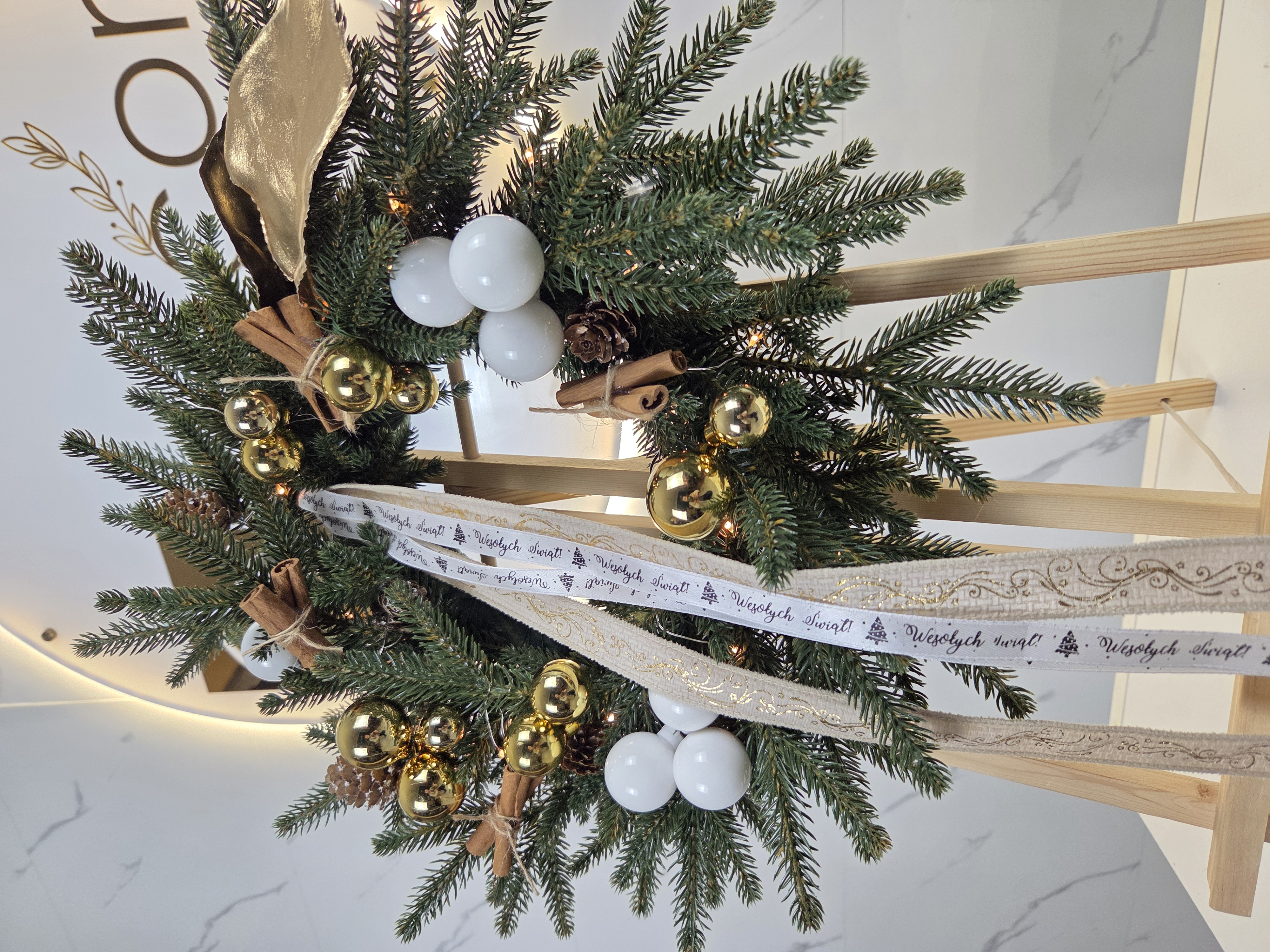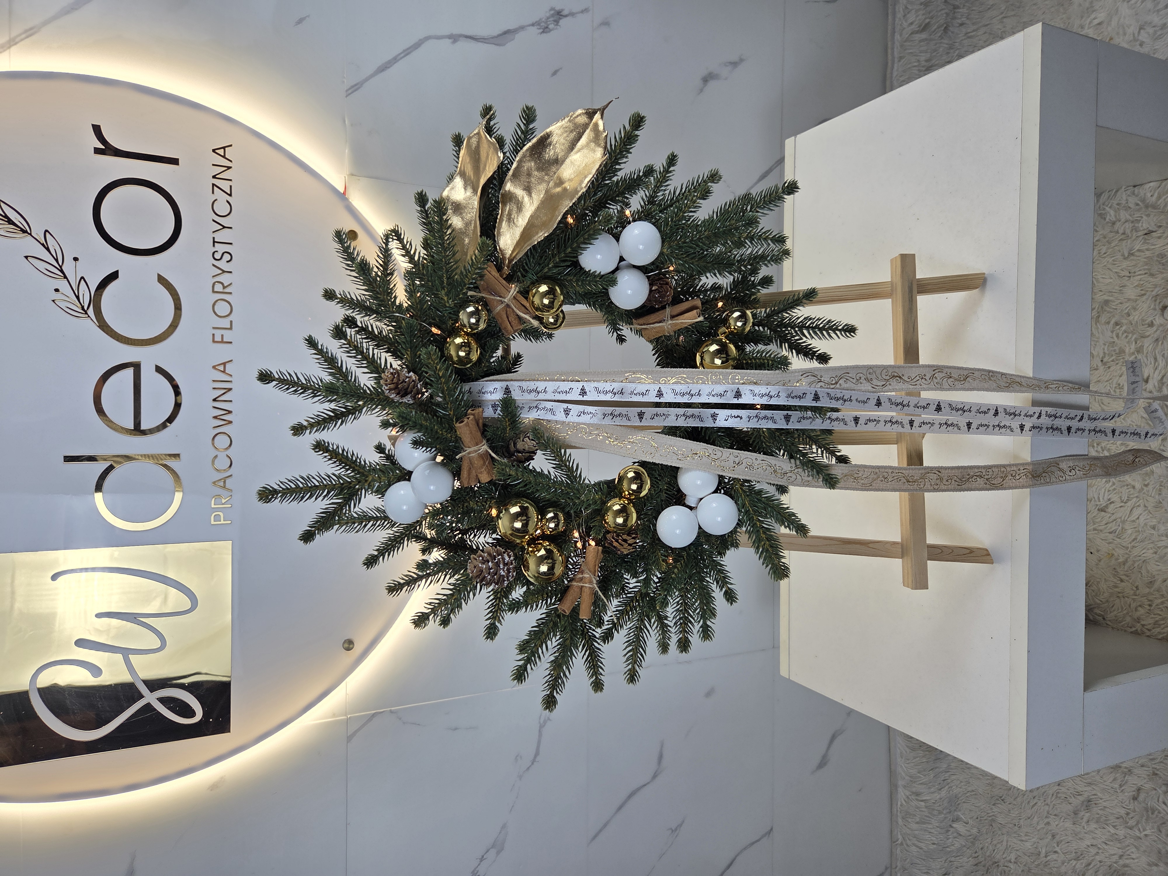 Wysoka jakość: Nasze wianki są tworzone na bazie solidnych, odpornych na warunki atmosferyczne materiałów, co sprawia, że doskonale nadają się zarówno do wnętrz, jak i na zewnątrz – jako ozdoba drzwi wejściowych, okien czy tarasu. Unikalność: Każdy wianek jest wykonany ręcznie, a wszystkie egzemplarze różnią się detalami, dzięki czemu kupują Państwo wyjątkową, jedyną w swoim rodzaju dekorację. Piękne zdobienia: Wianki są zdobione szklanymi bombkami, niezwykle wytrzymałymi, które w połączeniu z różnorodnymi dodatkami tworzą elegancką i ponadczasową dekorację. Gotowa dekoracja: Wianki są gotowe do zawieszenia. Dzięki starannemu wykonaniu, nie wymagają żadnych dodatkowych prac, co oszczędza czas i wysiłek. Uniwersalne zastosowanie: Nasze wianki doskonale pasują do różnych stylów – zarówno nowoczesnych, jak i klasycznych. Świetnie komponują się w salonach, korytarzach, holach, ale także jako ozdoba drzwi zewnętrznych czy ogrodowych altanek. Idealny prezent: Wianek to także doskonały pomysł na świąteczny prezent. Jego elegancka forma oraz wyjątkowe wykończenie sprawiają, że stanowi on efektowny podarunek na różne okazje.